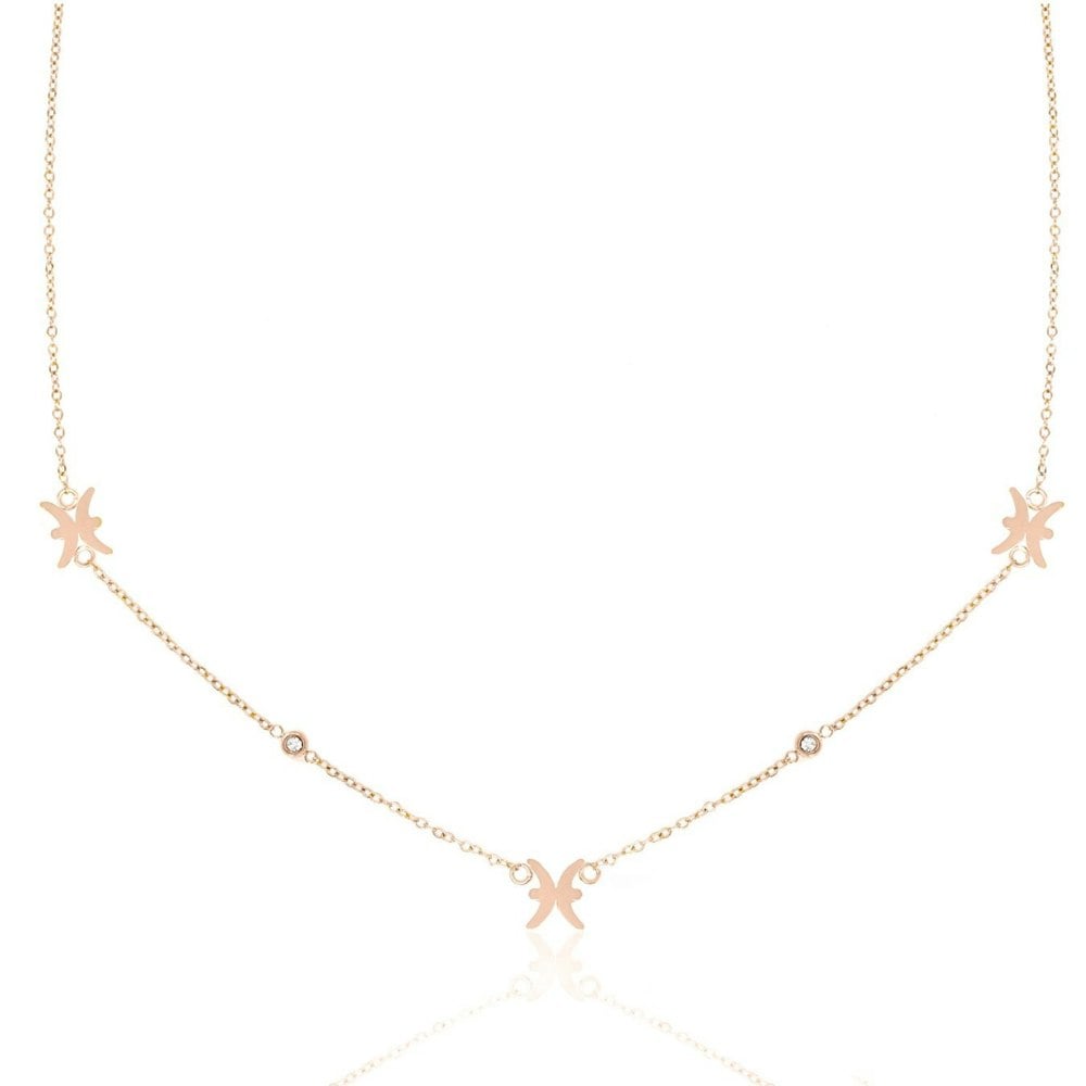This stunning Pisces Necklace in Rose Gold is crafted from stainless steel and features dazzling CZ feature stones on an 18-inch chain.