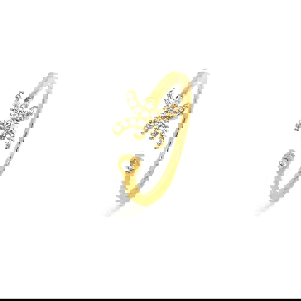 This stunning Pisces Ring in Yellow Gold is crafted from stainless steel and features dazzling CZ feature stones on an adjustable ring.