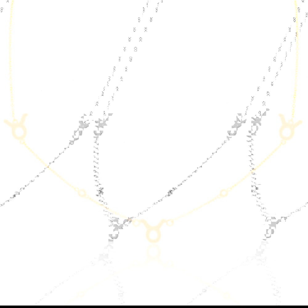 This stunning Taurus Necklace in Rose Gold is crafted from stainless steel and features dazzling CZ feature stones on an 18-inch chain.