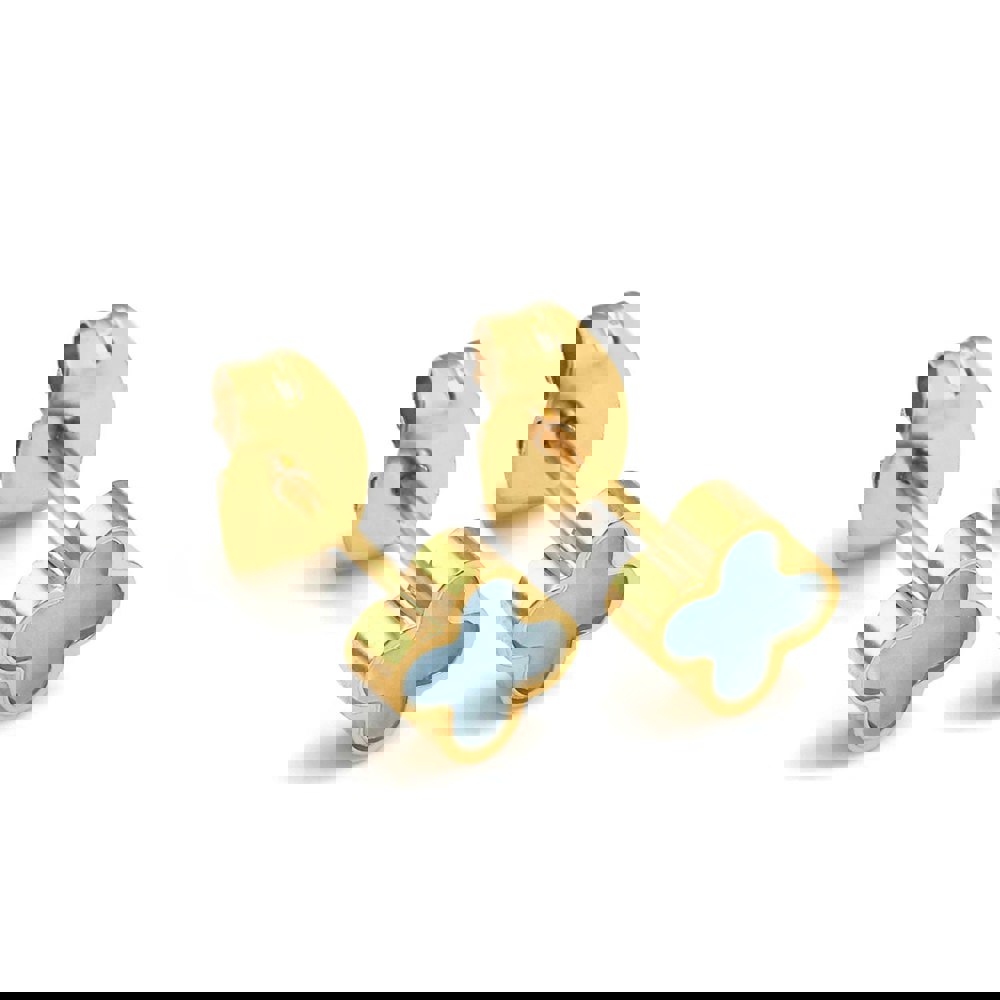 Add a splash of vibrant elegance to your style with the Turquoise Crystal Clover Earrings in Yellow Gold. Expertly crafted from durable stainless steel and plated in yellow gold, these earrings are waterproof, anti-fade, and anti-tarnish for lasting beauty.