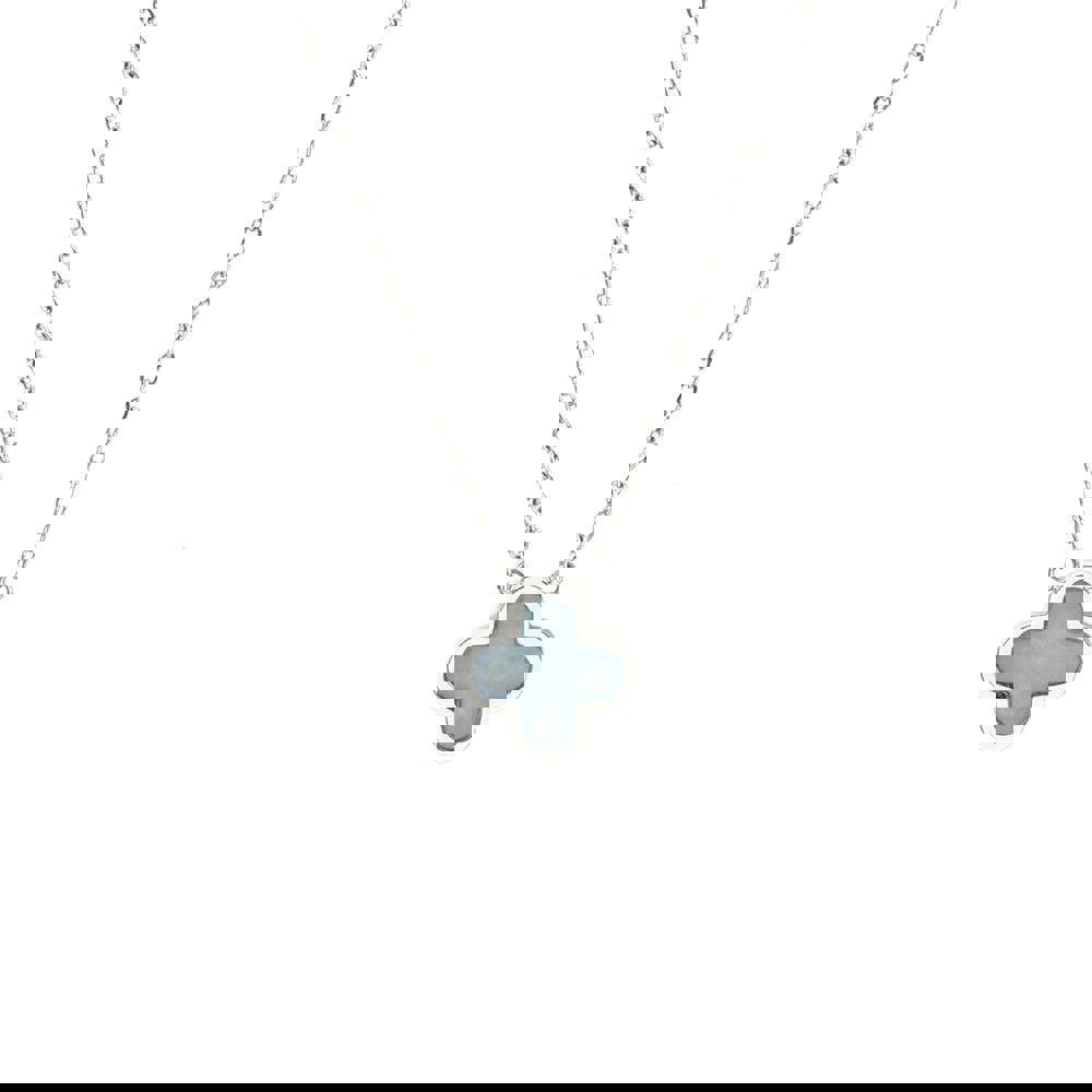 Add a fresh touch of colour and luck to your jewellery collection with our Turquoise Crystal Clover Necklace in Silver. Crafted from high-quality stainless steel, this elegant piece features a four-leaf clover pendant - long cherished as a symbol of good fortune and hope - finished in a sleek, polished silver tone.