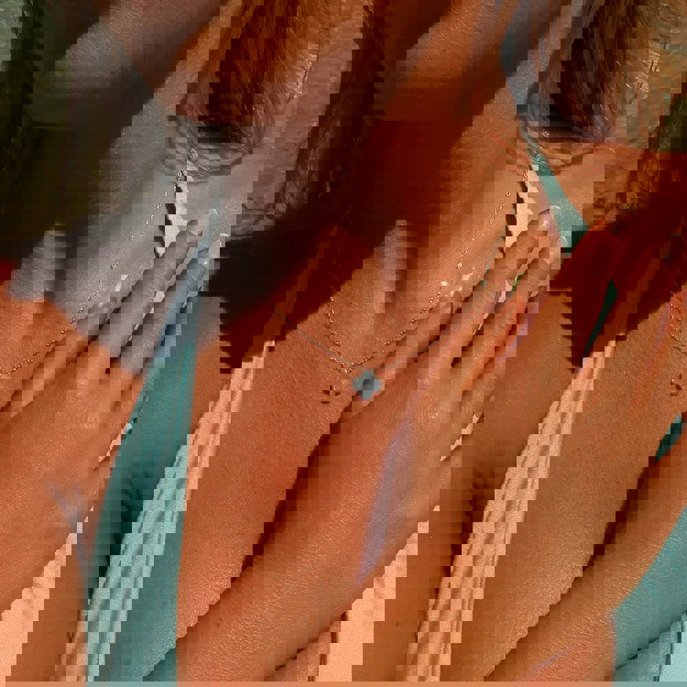 At the centre of the pendant sits a vibrant turquoise-coloured crystal, known for its calming blue-green hues that symbolise clarity, protection, and positive energy. The cool silver setting perfectly complements the rich turquoise tones, creating a look that’s both uplifting and effortlessly stylish.