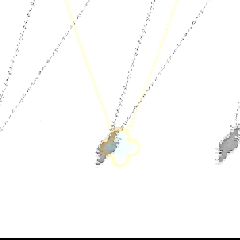 Infuse your everyday style with a sense of luck and vibrant charm with our Turquoise Crystal Clover Necklace in Yellow Gold. Expertly crafted from durable stainless steel and plated in radiant yellow gold, this timeless necklace features a delicate four-leaf clover pendant – a universal symbol of good fortune and positivity.