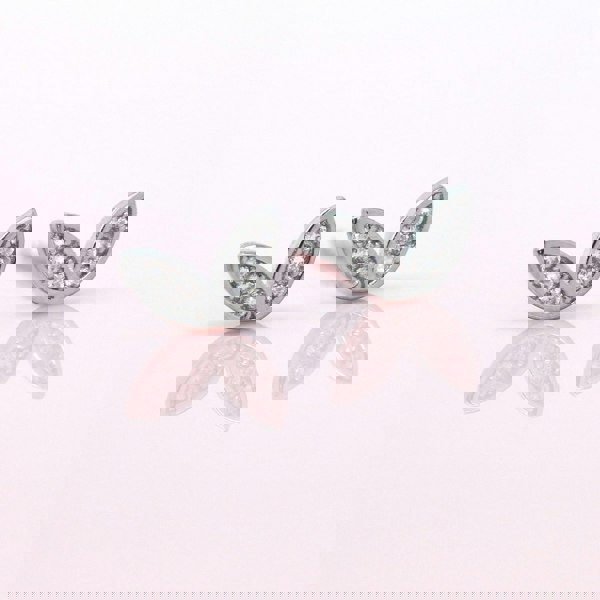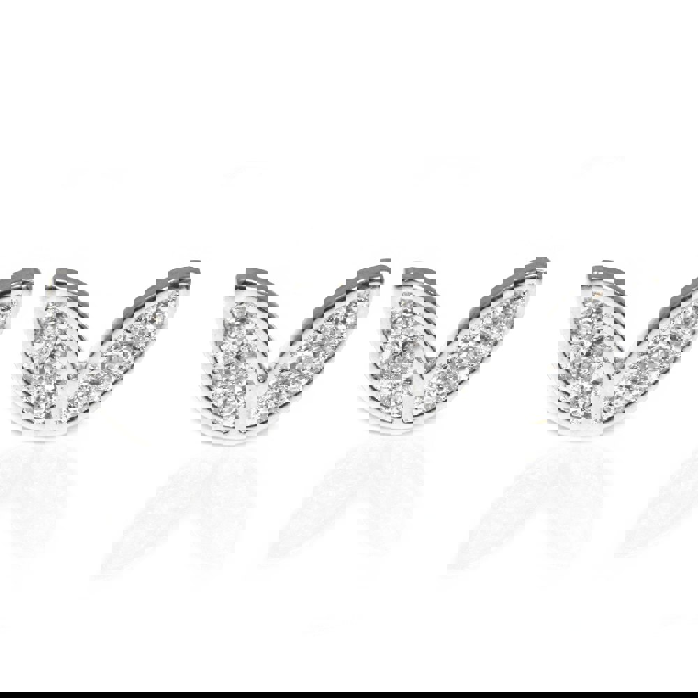 Part of our larger winged collection, these silver winged diamond earrings have six shimmering diamonds set within each individual stud, with easy-to-close butterfly backs.