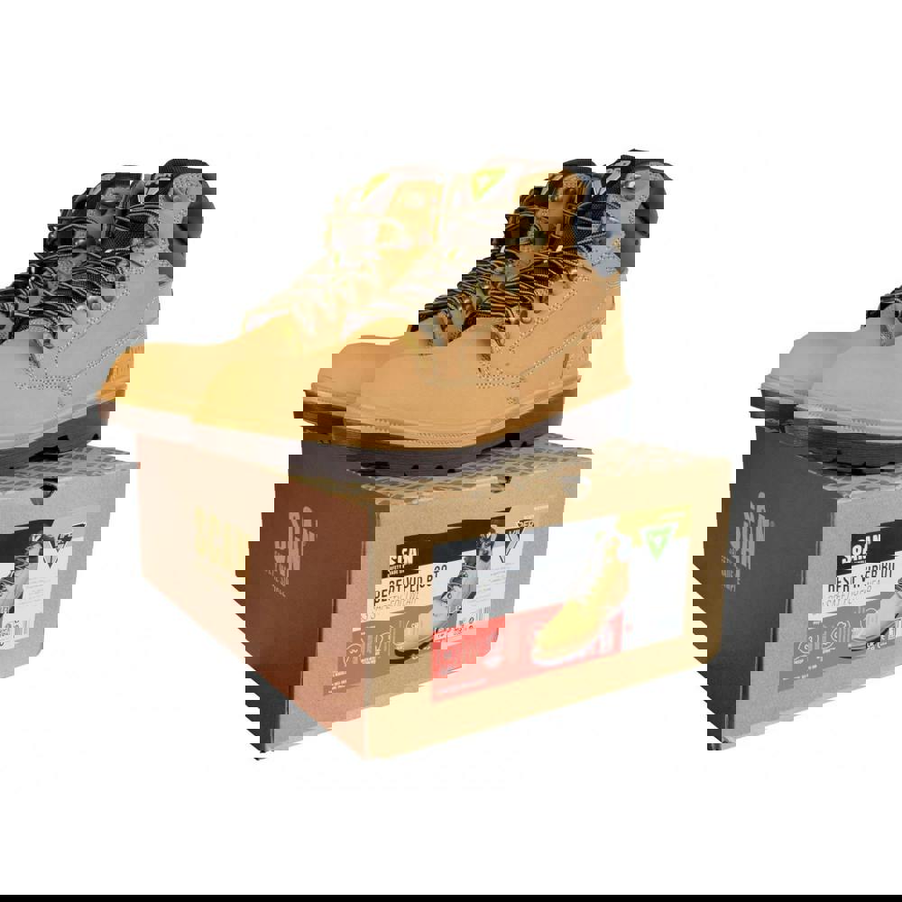 Scan Desert Viper S3 Safety Boots are built with action nubuck leather, water-resistant uppers and a padded mesh liner. Protection includes 200-joule steel toecaps and penetration-resistant steel midsoles, supported by an EN ISO 20345-2022 test standard and an S3 SR FO safety rating.