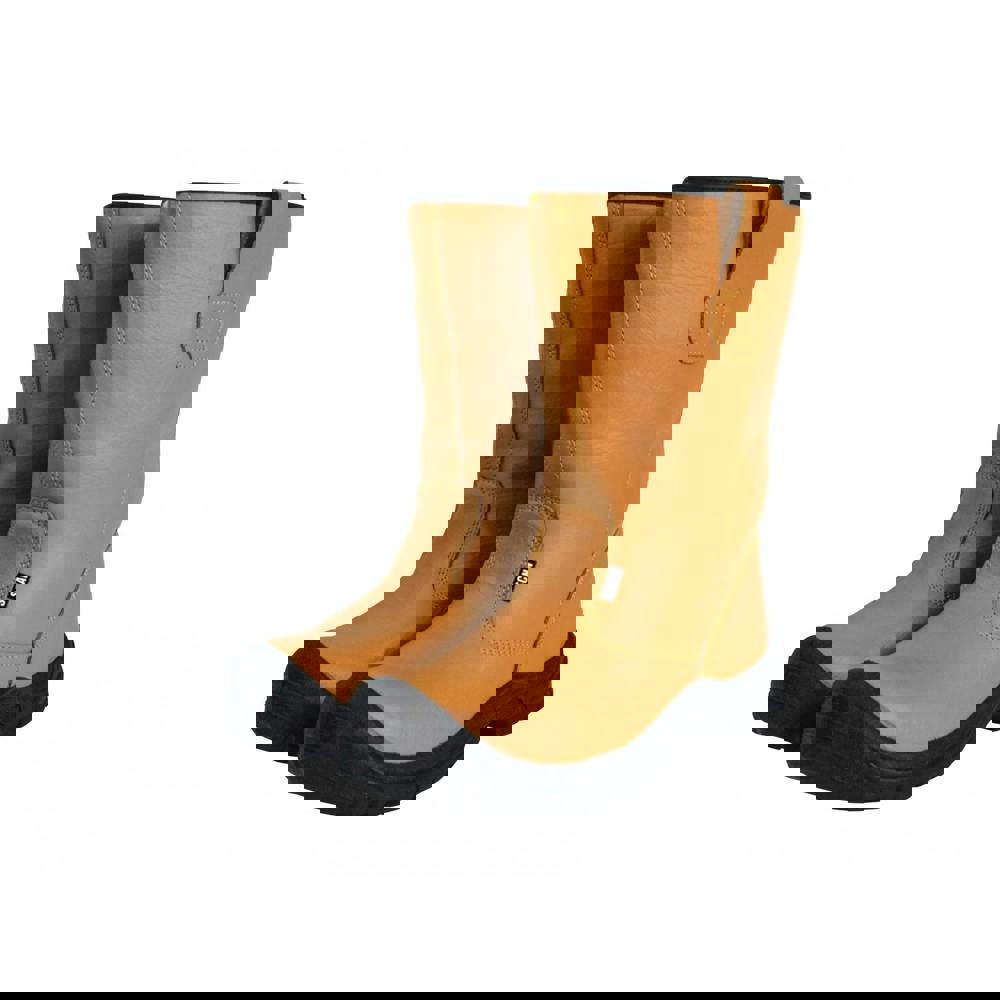 Scan Texas Lined Rigger Boots are pull-on safety boots with grained leather uppers and a fleece lining. Built for construction, haulage and outdoor work, they combine a cushioned insole and arch support with padded ankle protectors for added comfort.