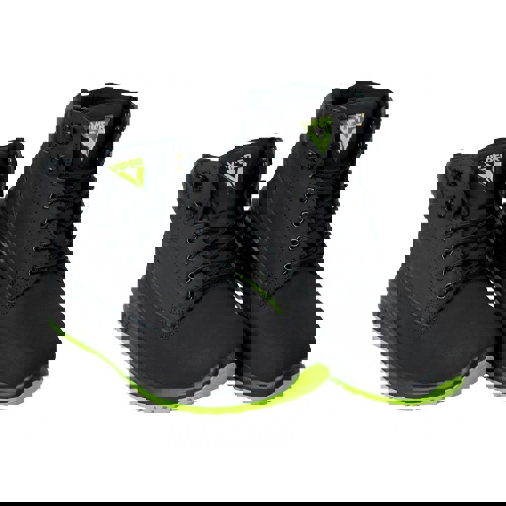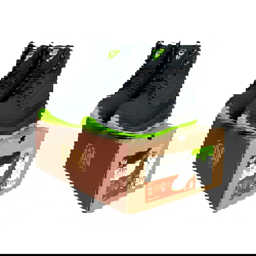 Scan Viper SBP safety boots are built with a full grain leather upper and protective components for workplace use. A 200-joule steel toecap and penetration resistant steel midsole provide added protection, while the dual-density PU outsole includes cushioning for comfort. An energy-absorbing heel helps maintain comfort over long periods.