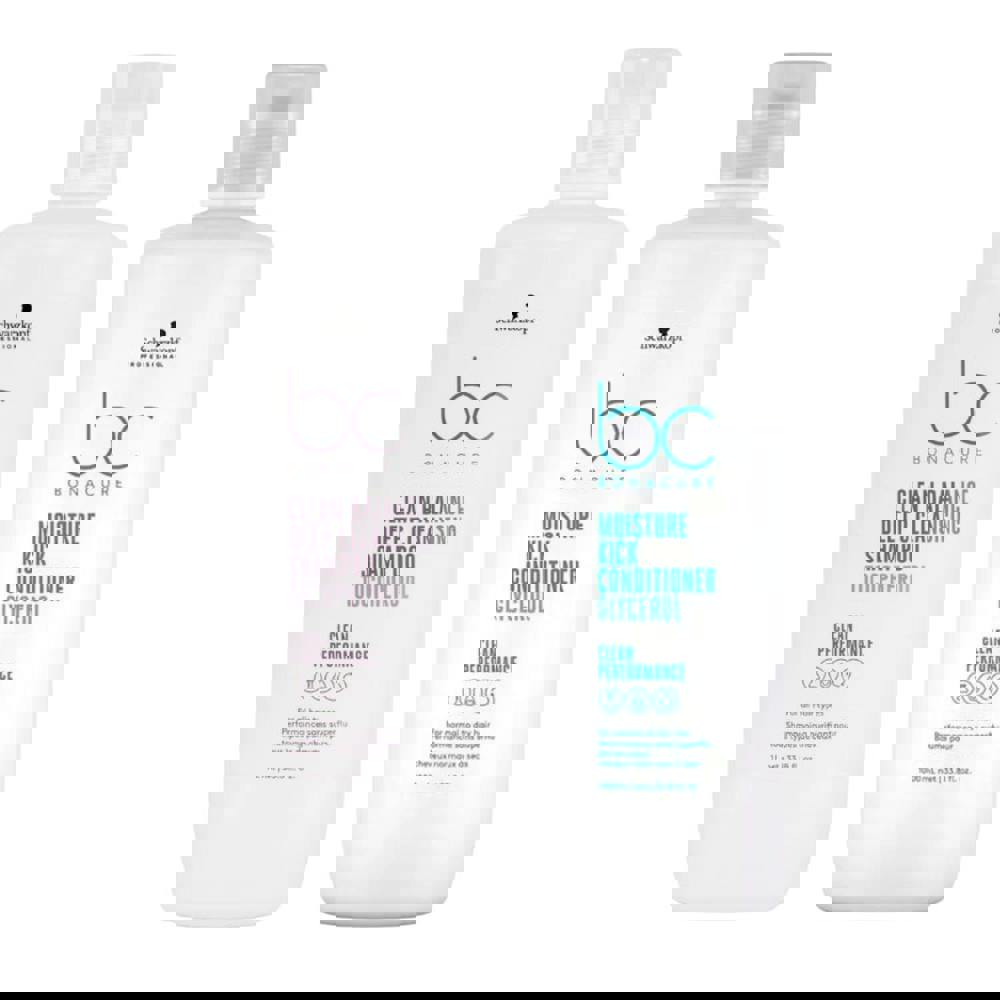 Schwarzkopf Professional BC Bonacure Clean Frizz Away Conditioner (1000ml) Schwarzkopf Professional BC Bonacure Clean Moisture Kick Conditioner (1000ml) instantly detangles and revives normal, dry, textured, brittle or curly hair types, improving overall condition whilst imparting brilliant shine and bounce.