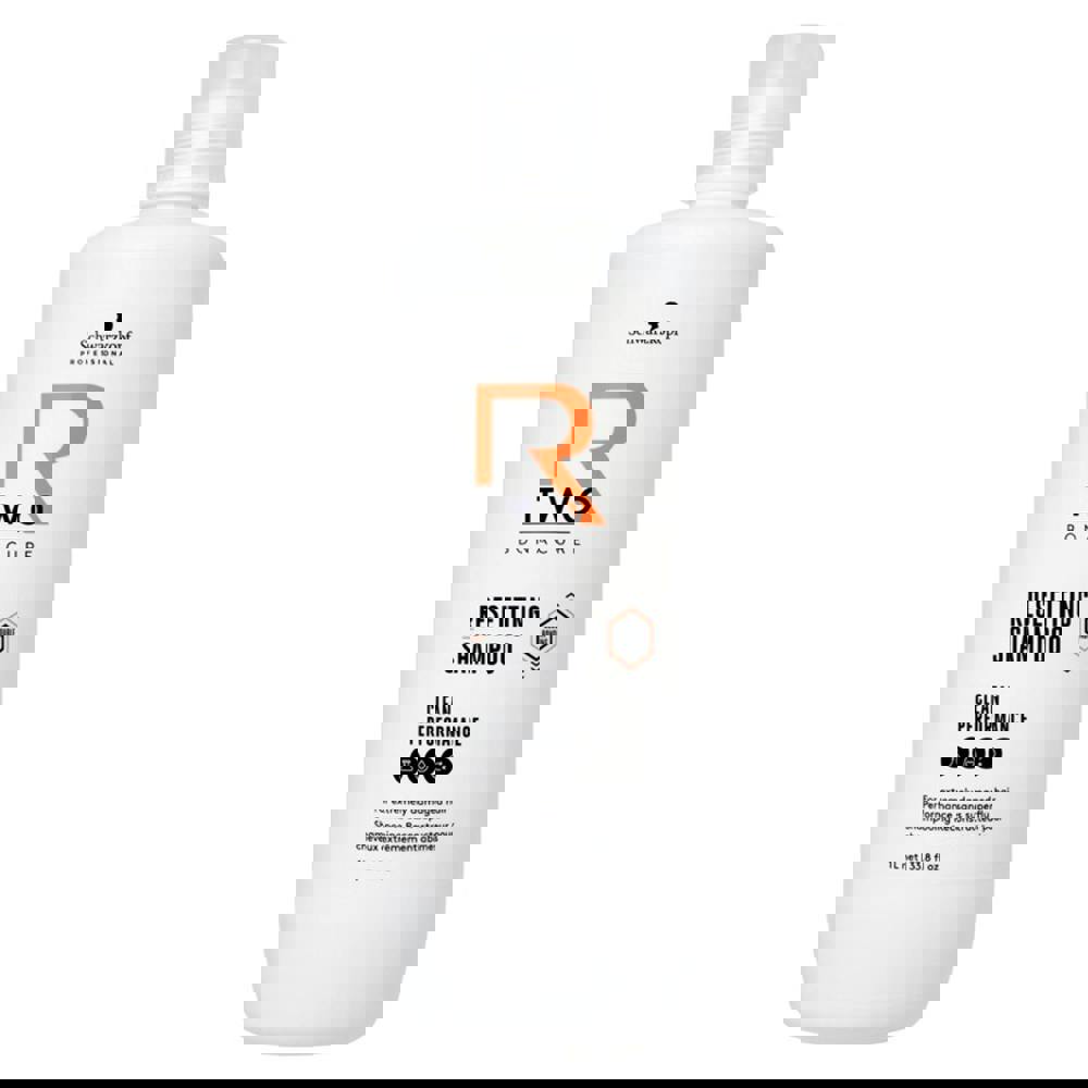 R-Two Resetting Shampoo - The free-from formula, combined with the Double Bonding Technology, delicately cleanses whilst actively supporting in the re-bonding process. The pH-optimised shampoo neutralises the pH level of the hair after chemical services, minimising cuticle swelling during washing.