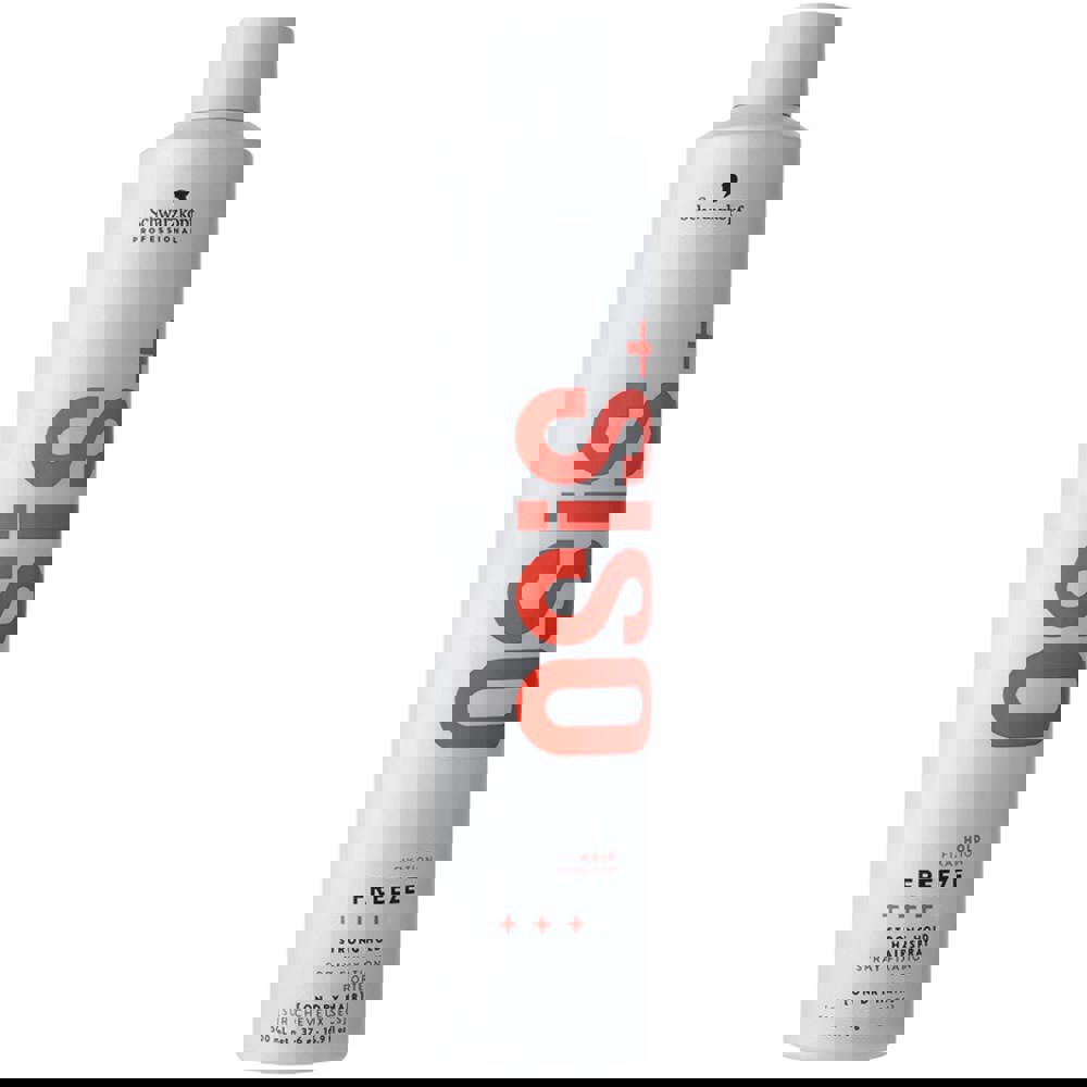 Schwarzkopf OSiS+ Freeze Strong Hold Spray is a strong hold hairspray perfect for creating styles that last all day. This spray makes hair easy to brush without any flaking, protects against humidity with an anti-humidity formula, and offers heat protection up to 230°C/450°F.