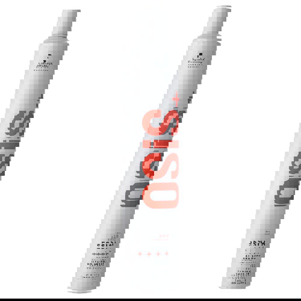 Schwarzkopf OSiS+ Session Extra Strong Hold Spray helps you create long-lasting styles by protecting hair against humidity, wind and heat up to 230°C/450°F.