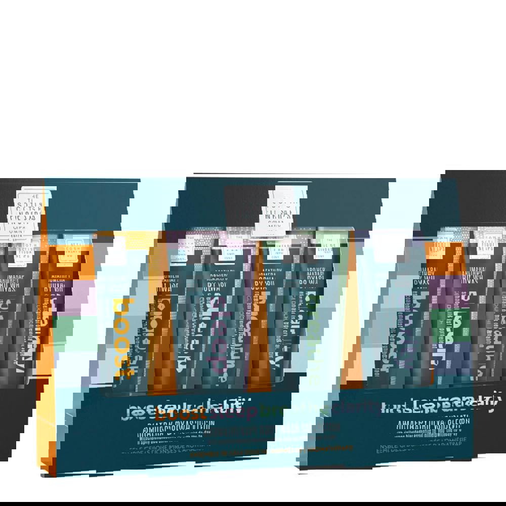 A travel set of bath & shower gels with essential oils infused to help support and improve wellbeing