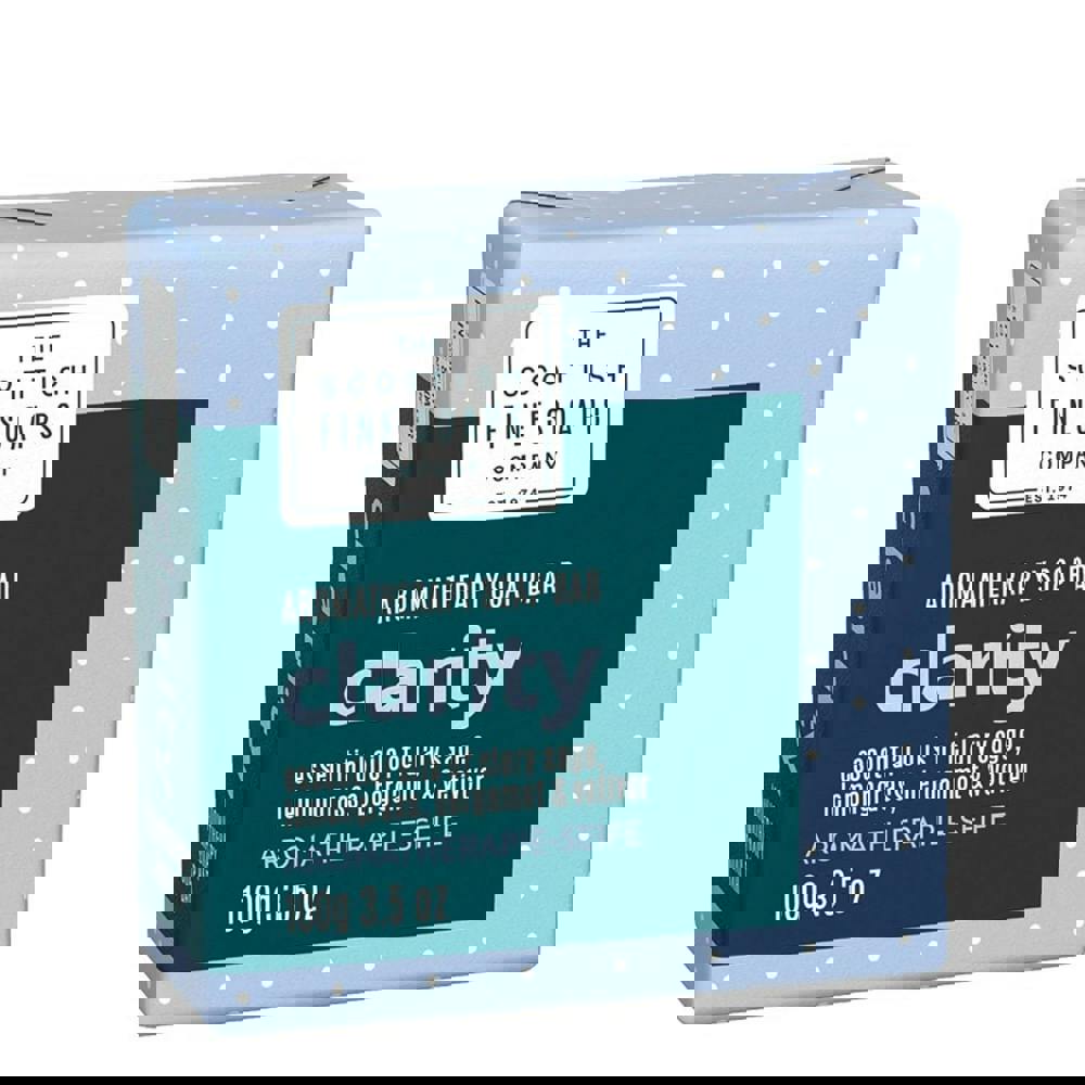 Sharpen your day with our Clarity Aromatherapy Soap Bar. Made with soothing magnesium and super softening flax seed oil and perfumed with calming essential oils of clary sage, lemongrass, bergamot and vetiver.