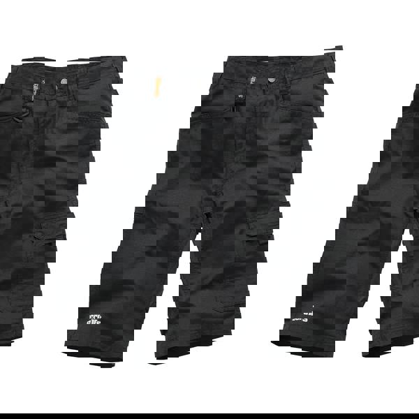 Hard-wearing work shorts designed for lasting comfort. Regular fit for classic look. Lightweight twill fabric with heavy-duty canvas pocket reinforcements and triple-stitched seams for durability. Features cargo pocket, rule pocket, mobile phone socket and secure zipped pocket. Hammer loop, tool loops and D-ring for transporting tools and accessories while on the job.