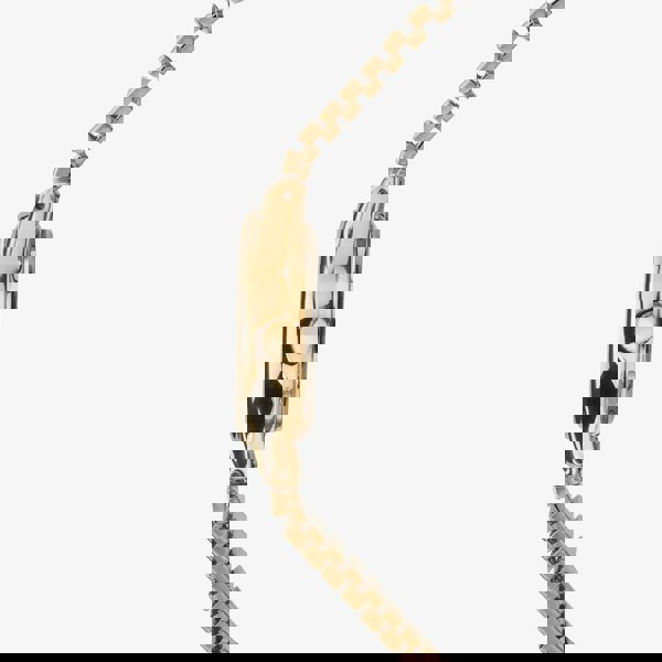 This elegant ladies timepiece is PVD gold plated with a slimline design. This watch features a classic white dial with statement black numeral hour markers. This watch fastens with an expandable bracelet.