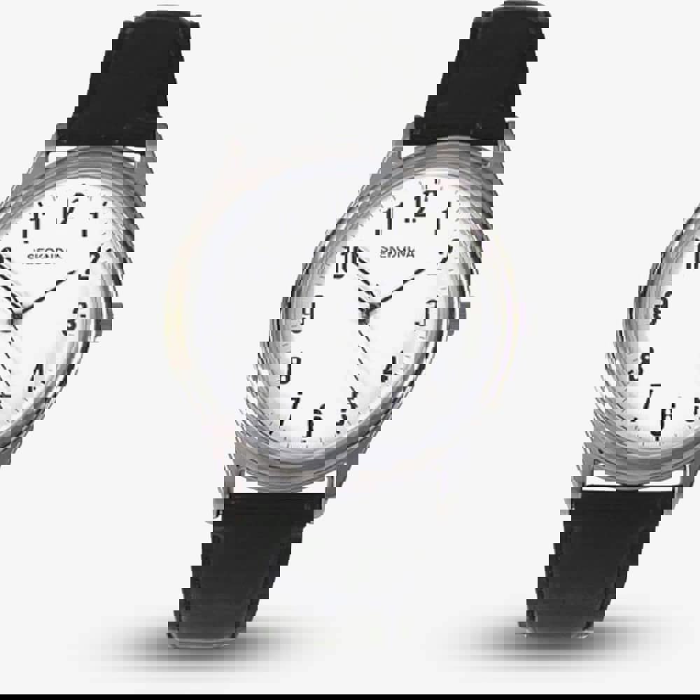 Encased in a sleek silver metal alloy case, this timepiece exudes understated elegance. Paired with a supple black leather strap, it offers both sophistication and versatility, making it the perfect accessory for any occasion.