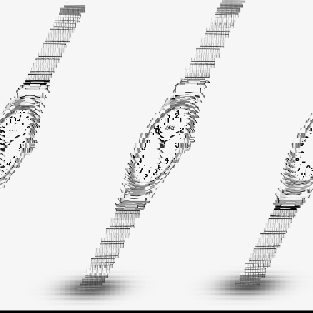 Crafted with sleek silver stainless steel, this timepiece exudes timeless sophistication, effortlessly complementing any ensemble featuring an expandable bracelet. With its minimalist design and versatile appeal, it seamlessly transitions from day to night, making it the perfect accessory for any occasion.