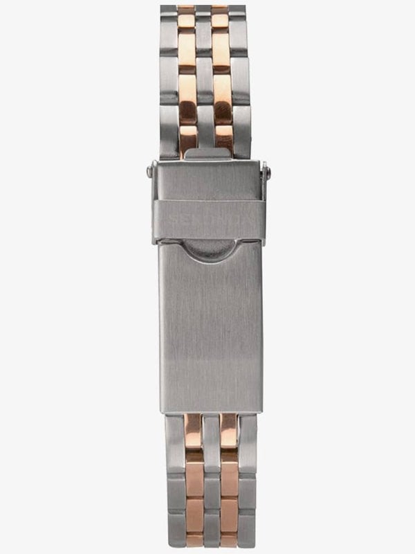 Crafted with precision, this timepiece seamlessly combines rose gold and silver tones, creating a captivating contrast that complements any ensemble. Its sleek design features a minimalist dial adorned with subtle accents, exuding timeless charm. Perfect for the modern woman who values both style and functionality.