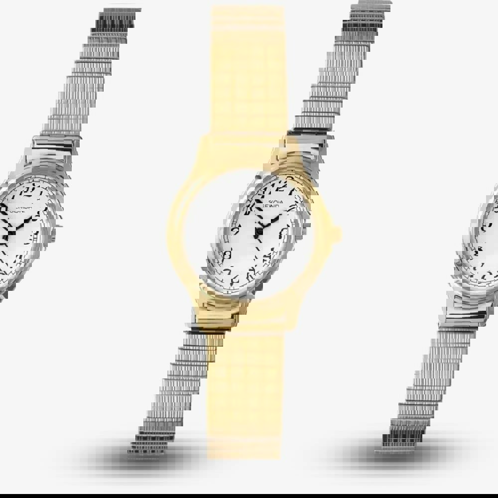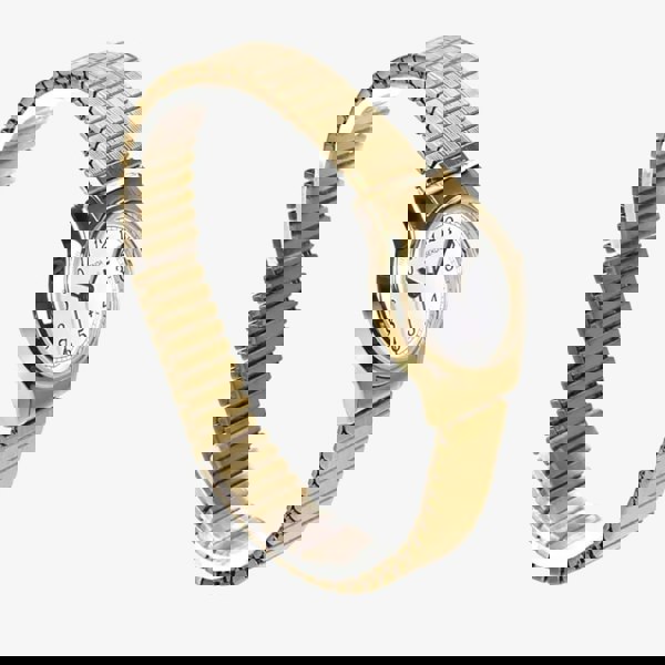 Combining classic elegance with effortless practicality. Featuring a sleek gold-tone stainless steel case and an expandable bracelet for a comfortable fit, this timepiece is designed for everyday wear. The clear, easy-to-read white dial is complemented by bold black numerals and hands, ensuring excellent visibility at a glance. Powered by the reliable quartz movement, this watch offers precision and durability.