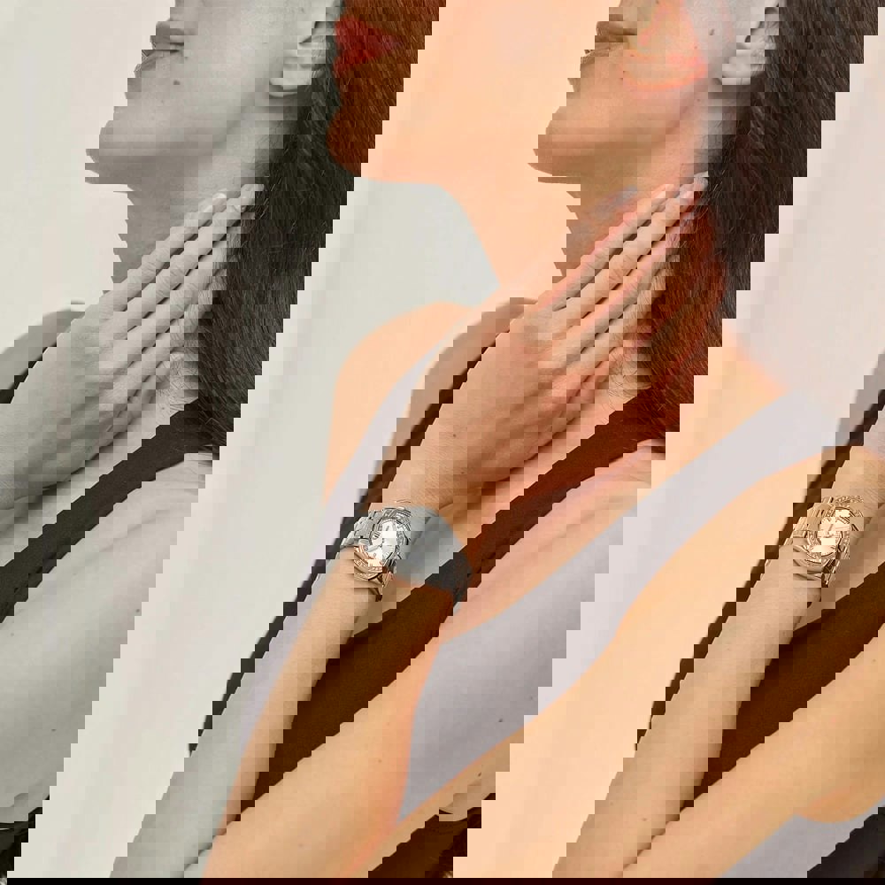 • Presented on a silver stainless steel bracelet with fold over clasp.