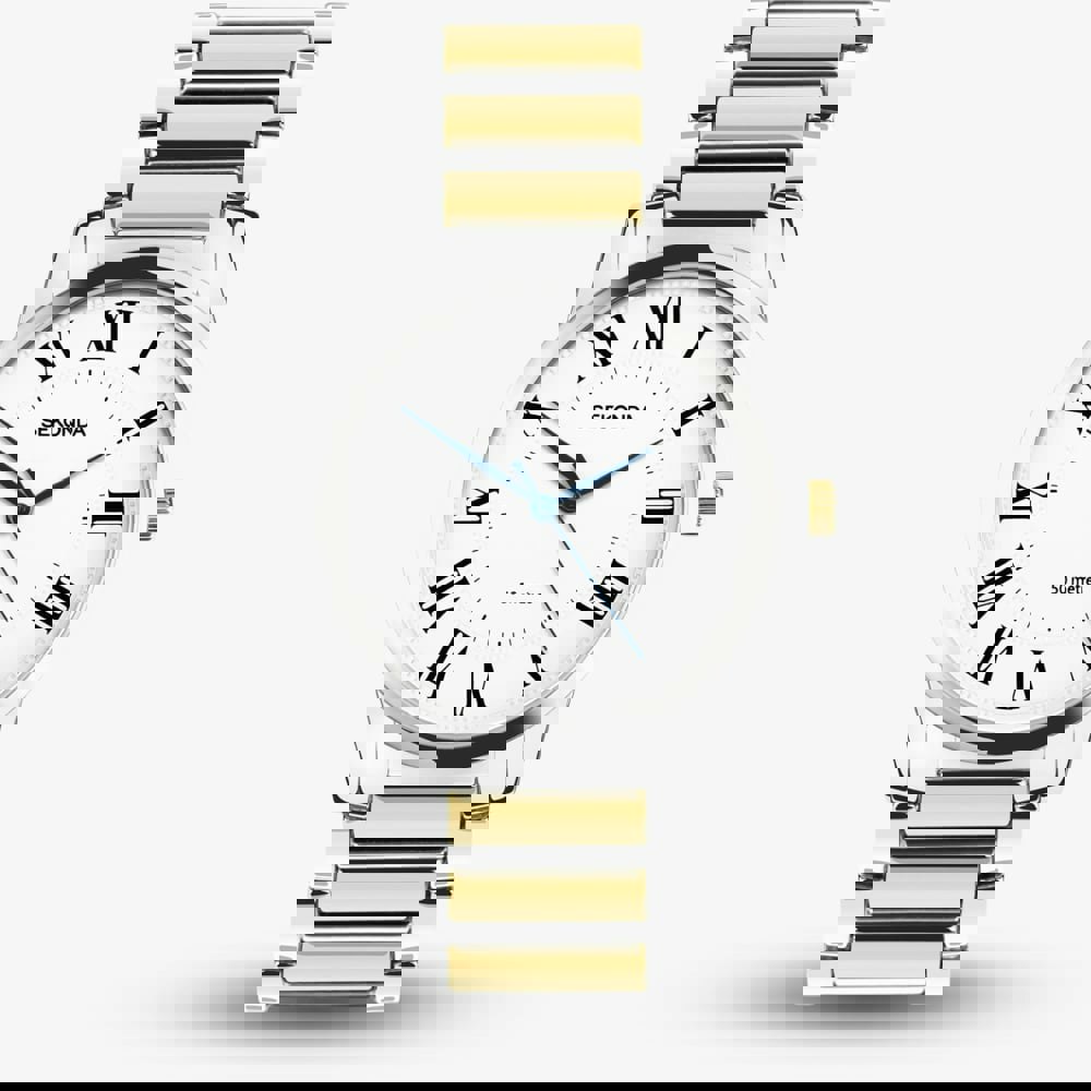 Combining classic design with a contemporary two-tone finish, creating a versatile and sophisticated timepiece. This watch is perfect for those who appreciate timeless style with a subtle modern twist.