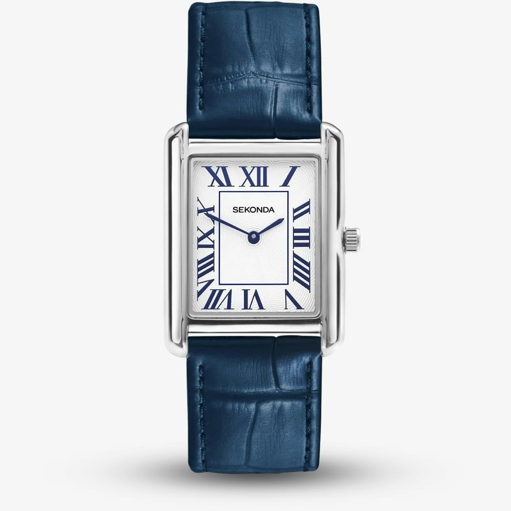 • Presented on a blue leather strap with traditional buckle.