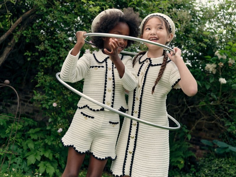 These girls’ mini shorts from Self-Portrait come in an ivory cream shade with a knitted construction. An elasticated waistband keeps the shape clean and simple, while black trims add contrast. The hem is finished with a scalloped edge for a neat outline.