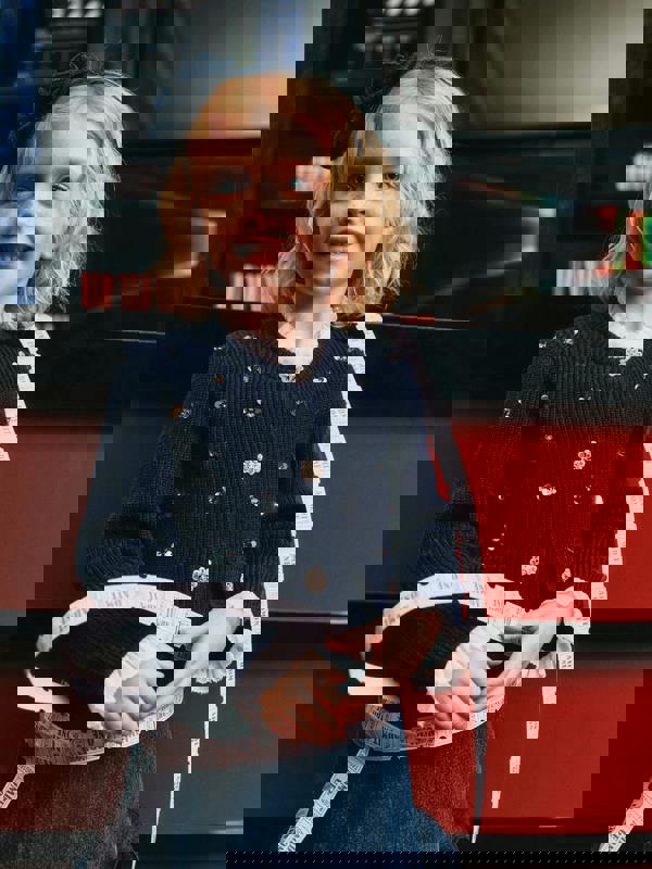 This Self-Portrait girls cardigan comes in navy with embellished detailing across the front. A soft knitted cotton blend forms the base, finished with white ruffle trims at the neckline and cuffs. Sparkling sequins add texture, while two faux pockets sit at the front with flower-shaped diamante buttons.