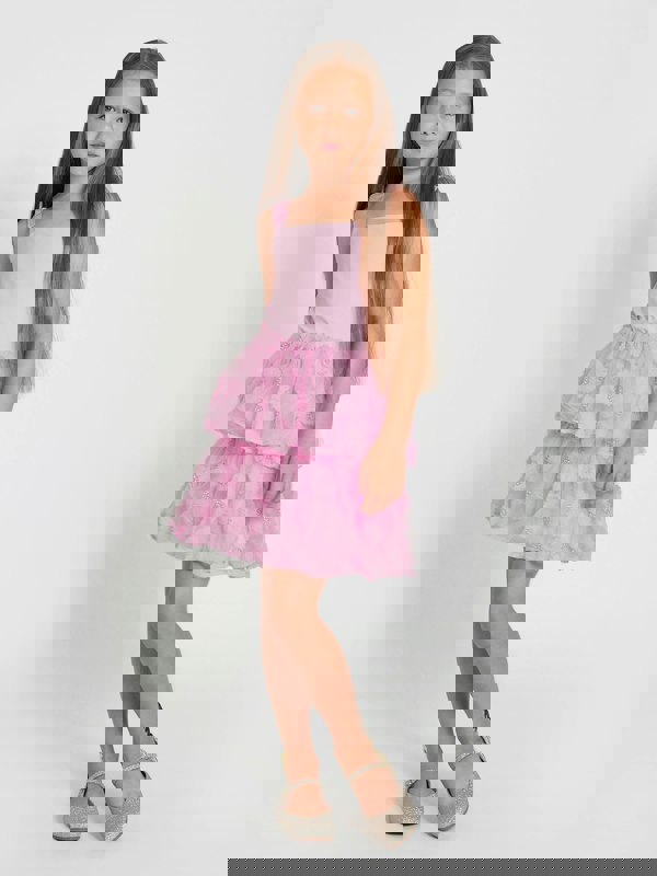 Self-Portrait draws on a bygone era of sophisticated embellishment and glamour. This girls dress in pink combines a stretchy cotton jersey bodice with a flouncy, two-tier skirt cut from sequin tulle. An elasticated waistband adds a flexible finish, while the fully lined construction keeps the silhouette neat and comfortable.