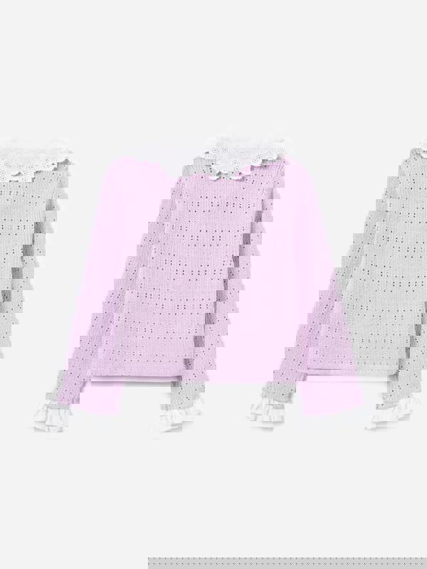 Self-Portrait reinterprets vintage archives into stylish everyday pieces. This girls pointelle ribbed knit cardigan comes in pink with a lace knit pattern and long sleeves. A classic, slightly cropped cut keeps the silhouette neat and easy to layer.