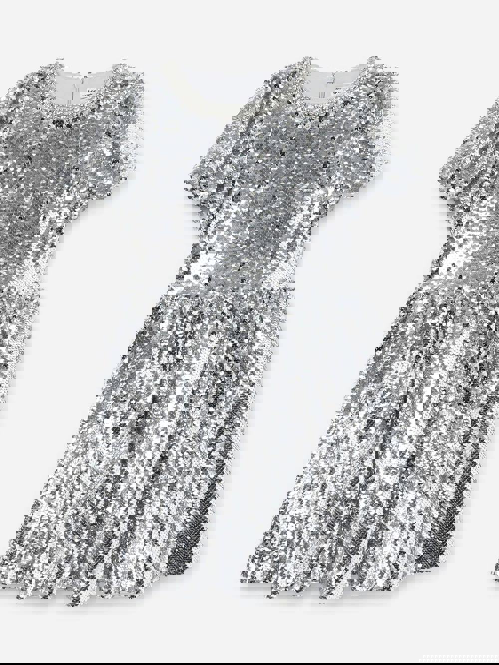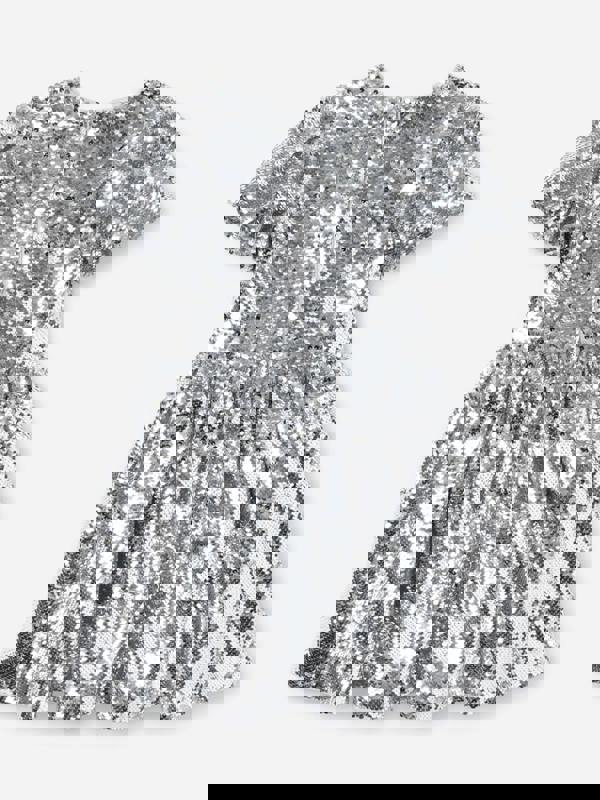 This Self Portrait girls dress comes in silver with an all-over sequin finish for a high-shine look. The statement design suits occasions where a more dressed-up outfit is needed.