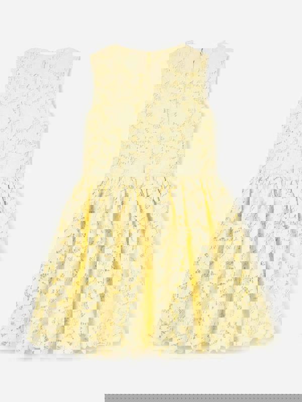 Self-Portrait reinterprets vintage archives into everyday pieces. This girls sleeveless lace dress comes in yellow with an all-over floral cutwork pattern. Lightweight lace and a flared skirt create a defined silhouette, while a tulle underlay adds structure beneath the skirt.