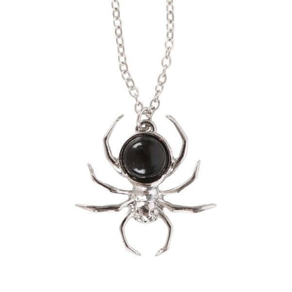 Add a little spooky to your style with this spider necklace crafted from stainless steel and featuring black obsidian details.
