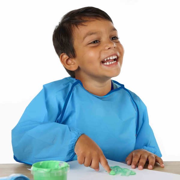 Craftwork is fun. Painting, colouring or sticking. Of course spills can always happen. But that's not a problem with this spills apron. This one size fits all , resusable, PVC free apron protects your clothes, because nothing can seep through, it also has elastic around the sleeves so that nothing can drip up your arms. Suits ages 3 to 8 years