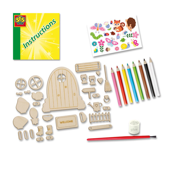 Step into a magical world with the Fairy Door! This set includes a wooden mini-door and matching accessories that you can easily assemble with glue. Create your own little mini-world that you can color with pencils and decorate with stickers. The clear instructions guide you step by step, making it perfect for creative minds who love crafting and fantasy.