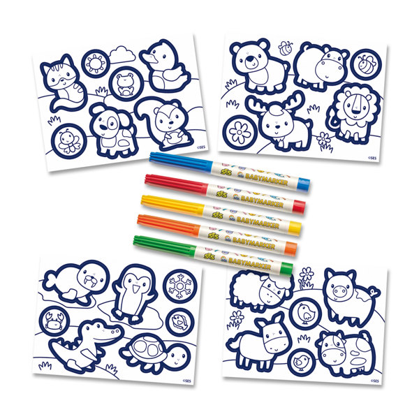 Whether they’re decorating animals, objects, or fun shapes, this activity is a delightful way to spark imagination and build confidence. The set includes 5 brightly colored baby markers in yellow, orange, red, green, and blue. These markers are designed with young children in mind—they feature ultra-sturdy, rounded tips that withstand enthusiastic coloring and are completely washable for worry-free fun.