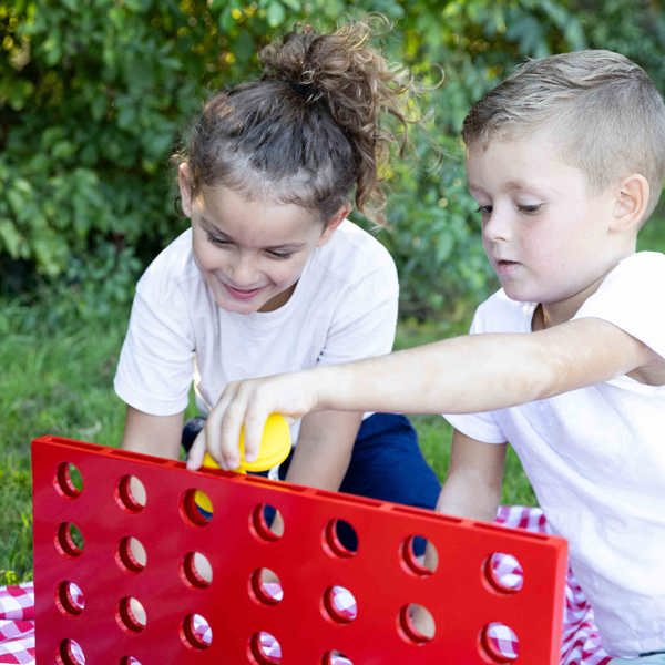 The classic game in an extra-large version, Wooden four in row XXL! This 3-piece wooden frame and 42 playing chips provide an afternoon full of strategy and fun for the whole family. Wooden four in row XXL is suitable for all ages and can be played anywhere.