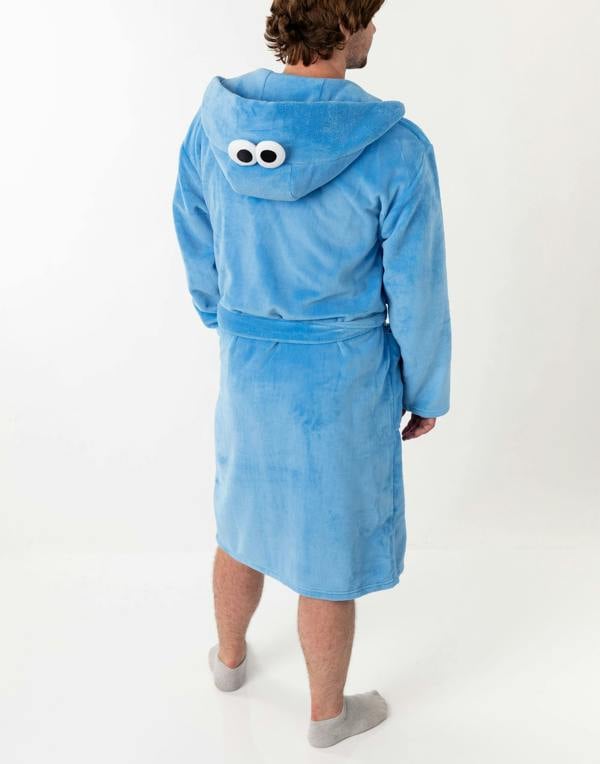 Introducing the Sesame Street Cookie Monster Unisex Hooded Bathrobe, designed for adults who enjoy lounging in comfort