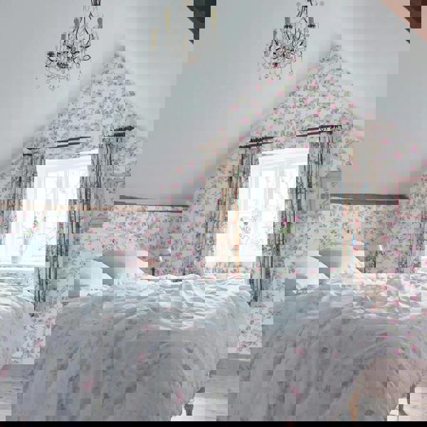 The Royal Bouquet wallpaper design is a heritage print found in the Shabby Chic by Rachel Ashwell® archive. This majestic floral brings the serenity of an English country garden indoors with a nature-inspired palette of exquisite rose pinks and soft sage greens. An impressionist twist on a traditional floral, Royal Bouquet wallpaper is abundant with cabbage roses and stems, celebrating the splendours of countryside living. This print was first introduced to the Shabby Chic® collection in 1992 and remains a tried-and-true favourite with customers.