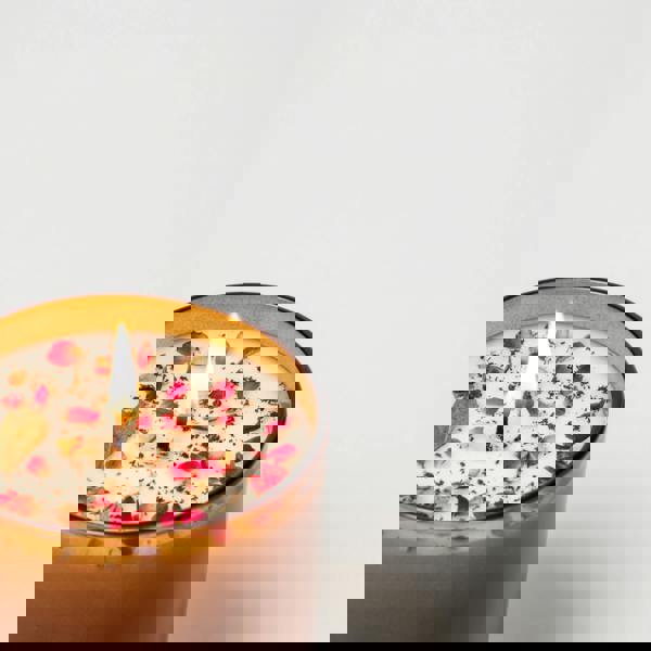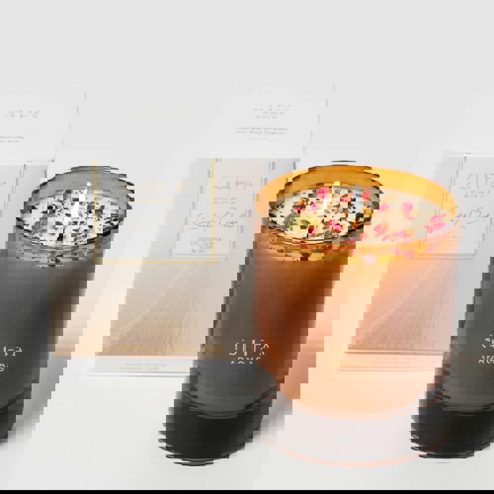 Café Oud presents a rich blend of essential and natural oils, featuring Bergamot and spicy Pimento at its core, harmonized with the luxurious depth of precious Oud and Davana. This fragrance gracefully concludes with warm notes of Vanilla and Suede. Enriched with Persian Tea Rose Petals, Oud wood, and accented by Tea Leaves, the candle offers an elegant and refined sensory experience.