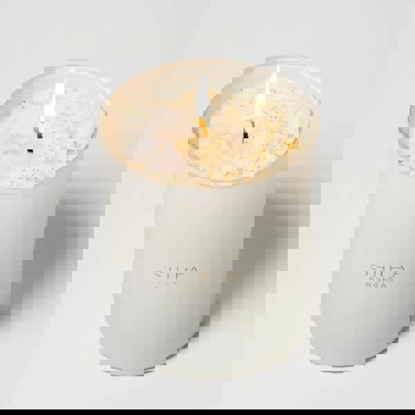 Hammam d’Orient offers a tranquil scent featuring deep woody tones enhanced by Cardamom and warm spices. Its foundation is built on refreshing Sandalwood, Sawdust, and opulent Oud. The luxurious glass candle is enriched with graceful Lilac Hydrangea and Chamomile petals, completed with a delicate dusting of Cardamom powder.
