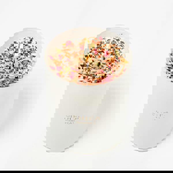 Secret Garden enchants with a harmonious fusion of spicy and fruity aromas, beginning with vibrant Bergamot, Petitgrain, Peach, and Pineapple notes. It gently settles into a warm foundation of caramelized sugar and Tonka bean. This elegant glass candle is enriched with Oud wood, red Sandalwood, and the finest Rose petals for a truly refined experience.