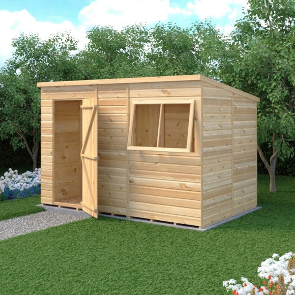 Versatile switchable front panels allow you to customise the shed to suit your space, Crafted from high-quality FSC timber and made in the UK, this shed exemplifies sustainable design and manufacturing excellence. Elevate your outdoor storage solution with the Shire 10x6 Pent Shed today!