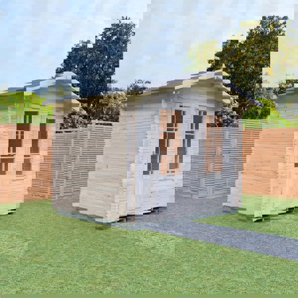 The cabin features a stunning 15mm tongue and groove (T&G) roof and floor, delivering a high-quality finish that's not only aesthetically pleasing but also practical. The single door provides easy access, and a large window filled with glass allows natural light to infuse the space, creating an airy and bright environment.