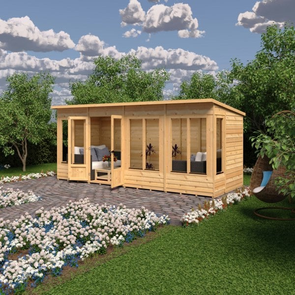 Step into style with the Shire 16x6 Alora Pent Summerhouse, an idyllic escape for your garden. With its generous dimensions of 4776mm width and 1859mm depth, this summerhouse is perfect for entertaining or enjoying quiet moments surrounded by nature. Crafted from high-quality, FSC certified timber, the Alora features traditionally crafted mortise and tenon double doors, ensuring both durability and elegance.