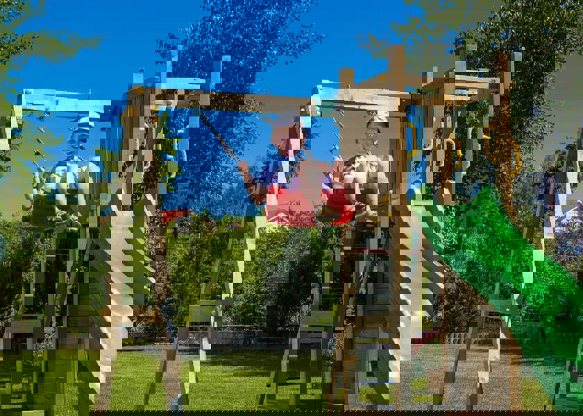 From the tower, children can enjoy the smooth wave slide back down to the ground, or take turns on the swing for classic playground fun. Beneath the tower, the integrated sandpit provides an additional space for creative play such as digging and building.