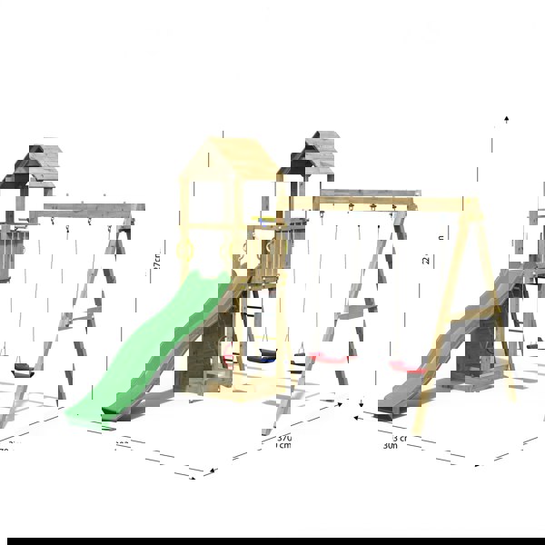 CM Height 272 Width 370 Depth 303 Slide x1 Climbing wall x1 Tower x1 Swing x2