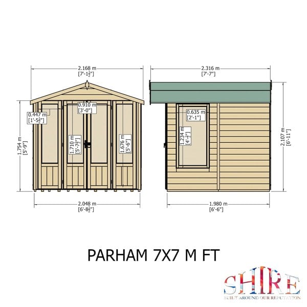 About Your Order: The Parham is a British-made summerhouse, constructed using certified timber to promise environmentally responsible sourcing. It is carefully designed for straightforward assembly and is accompanied by a 10-year anti-rot guarantee and a 12-month manufacturer's warranty. Arriving flat-packed for convenience, the summerhouse is simple to handle and put together. The materials and fittings are of the highest quality, and assembly services are available should you require them.