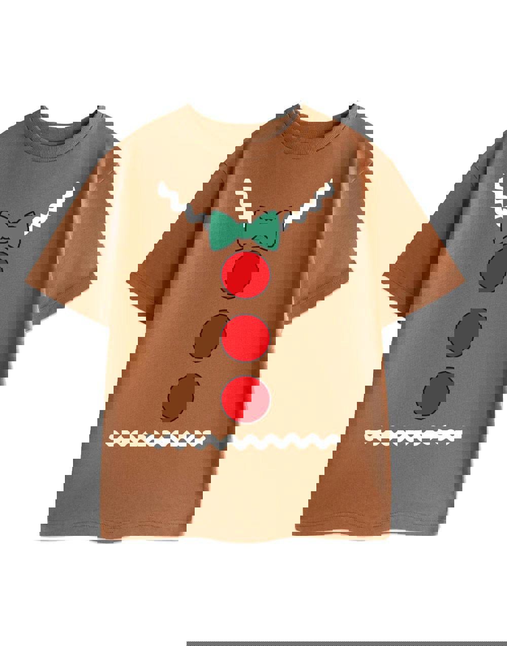 The t-shirt features a playful cartoon graphic of a gingerbread man, a design that's sure to resonate with both kids and adults alike