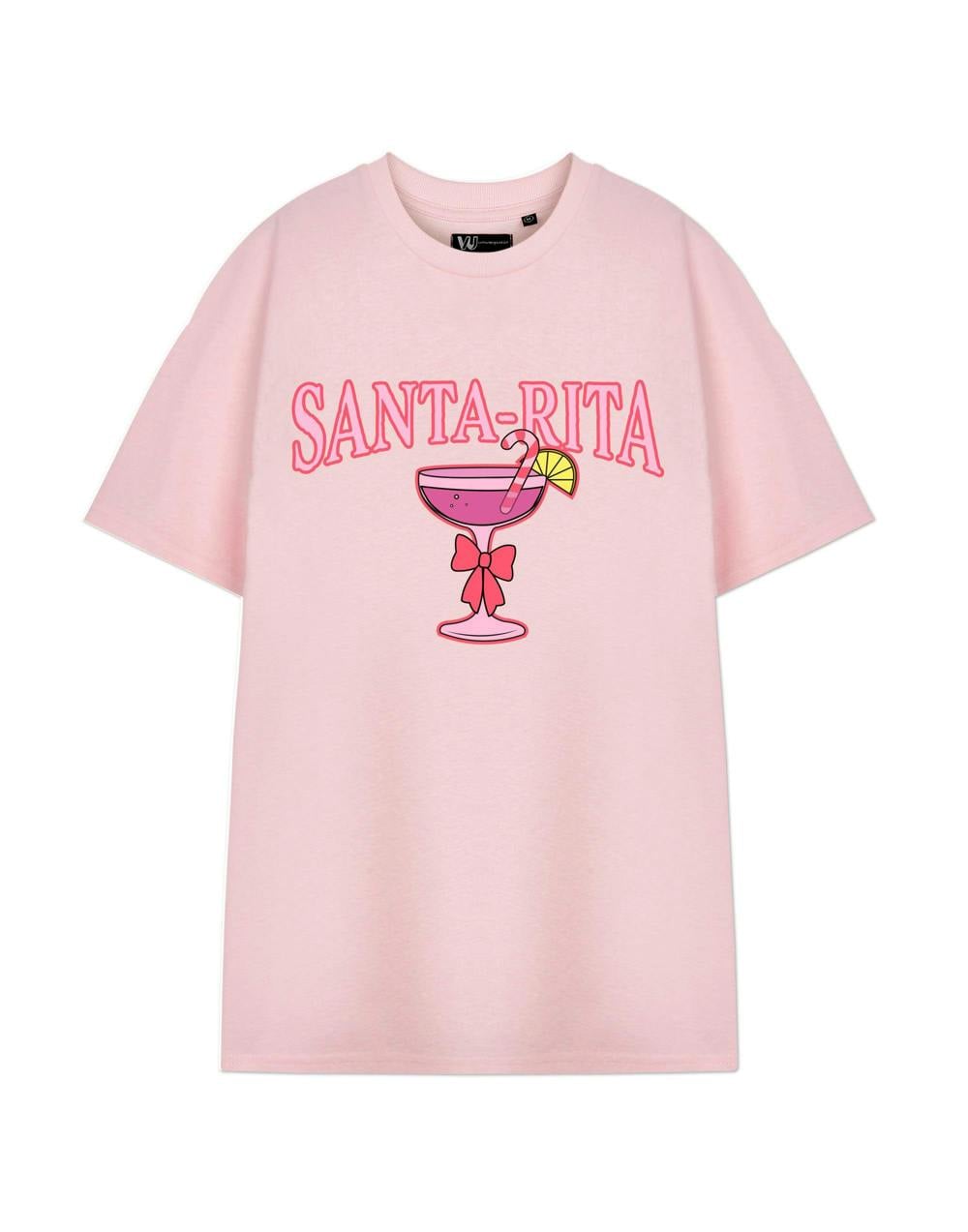 This holiday t-shirt features a festive margarita design with the playful slogan "Santa-Rita", making it a fun choice for Christmas celebrations